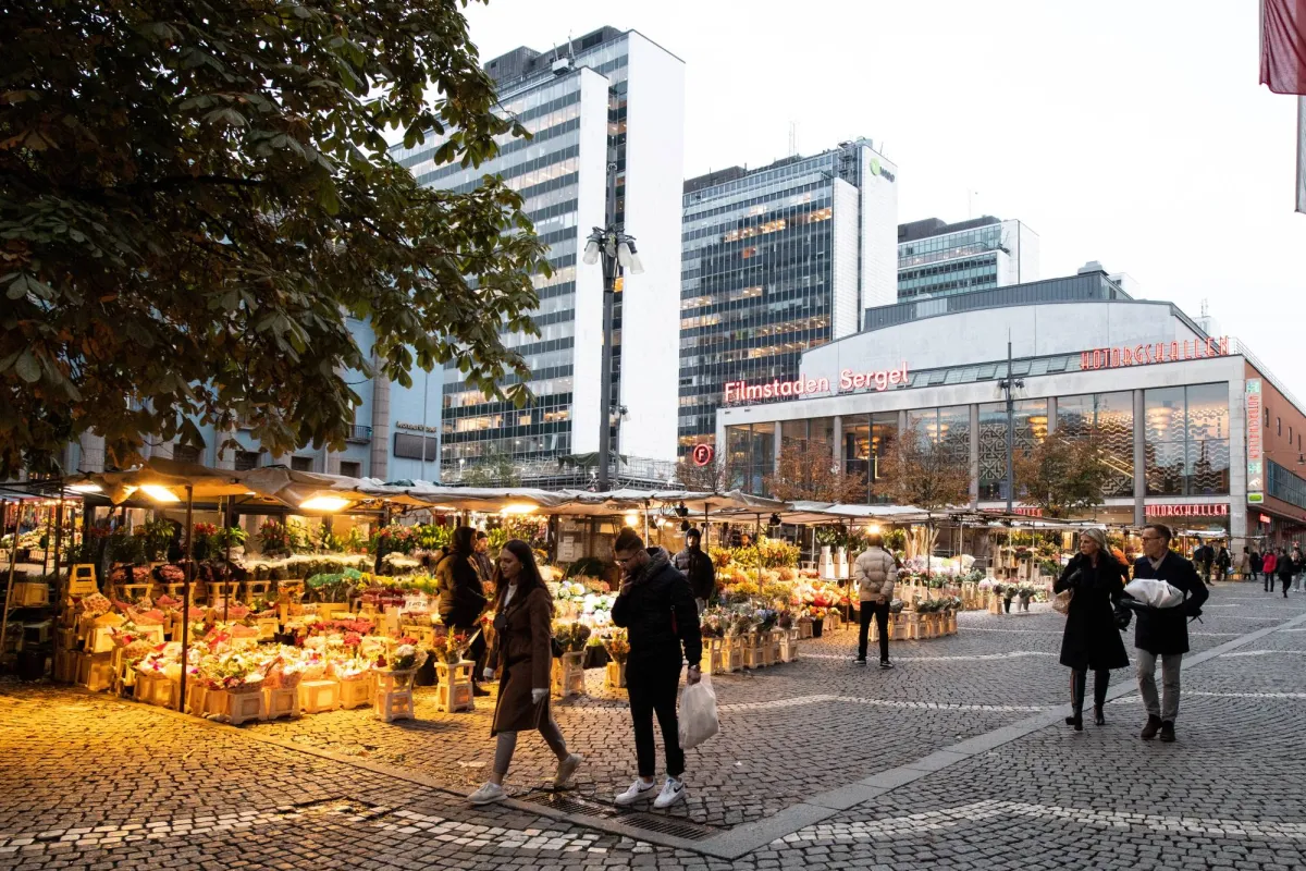 أشخاص في ساحة هوثورغيت بوسط استوكهولم (رويترز)