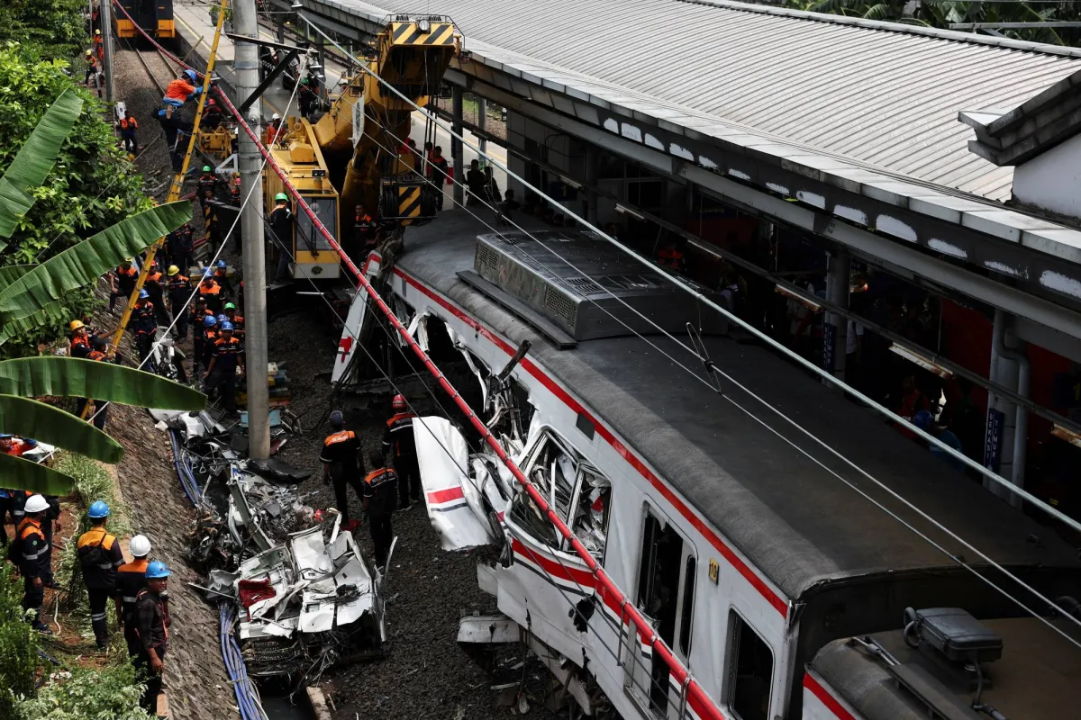 أفادت الشركة المشغلة للقطارات في إندونيسيا اليوم الثلاثاء بأن عدد القتلى جراء اصطدام قطارين بالقرب من العاصمة جاكرتا ارتفع إلى 14، بالإضافة إلى إصابة 84 آخرين. وذلك في الوقت الذي يعمل فيه أفراد الإنقاذ على إخراج الناجين الذين ما زالوا محاصرين وسط الحطام.