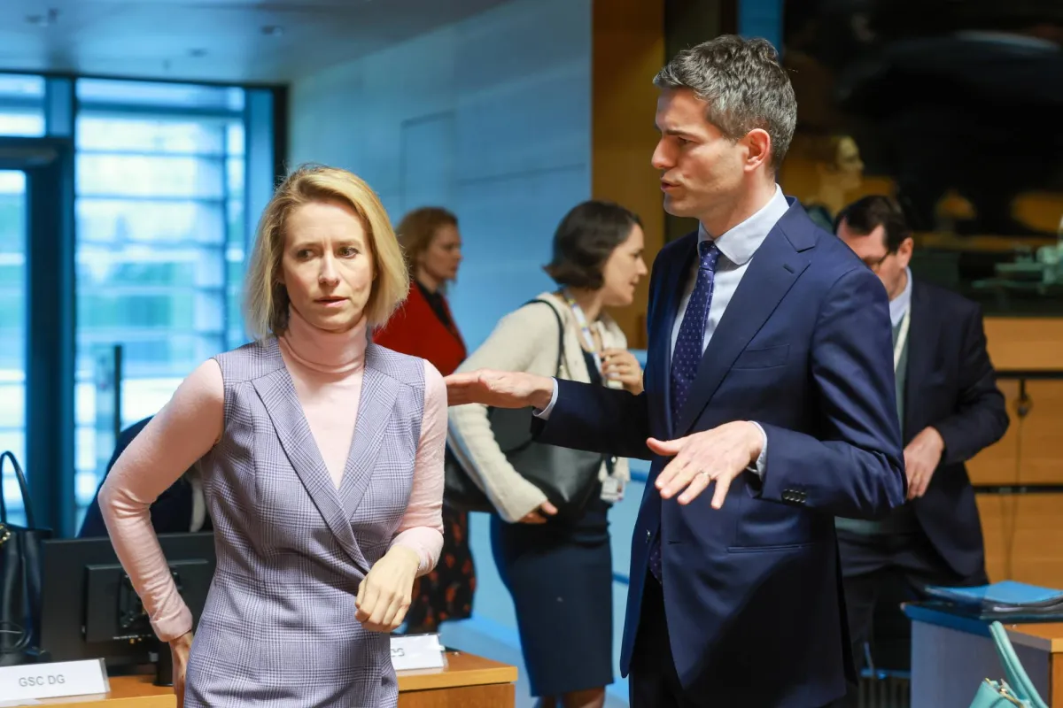 الممثلة العليا للاتحاد الأوروبي للشؤون الخارجية والسياسة الأمنية كايا كالاس ووزير الخارجية الهولندي توم بيريندسن خلال اجتماع مجلس الشؤون الخارجية في مدينة لوكسمبورغ... 21 أبريل 2026 (إ.ب.أ)