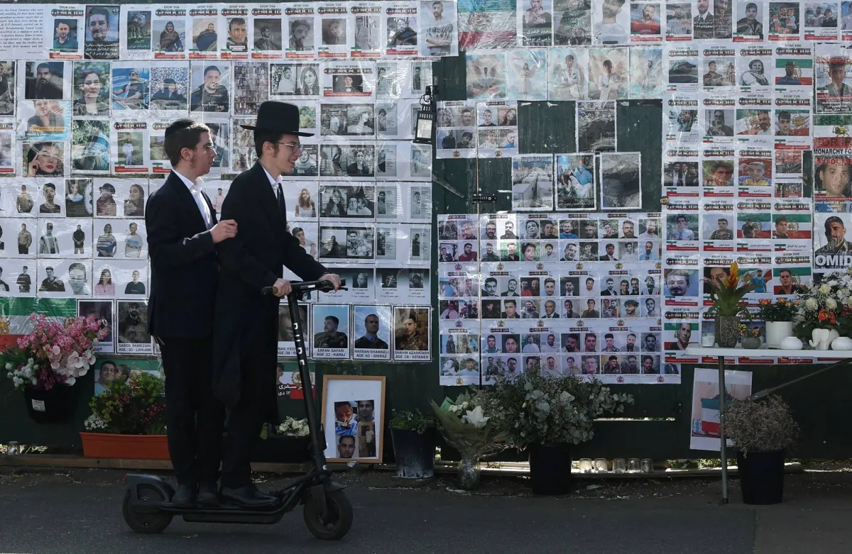 يمرّ أفراد من الجالية اليهودية بسياراتهم أمام جدار تذكاري، مُخصّص لضحايا هجمات 7 أكتوبروذلك في شارع لايمز أفينيو بمنطقة غولدرز غرين (رويترز)