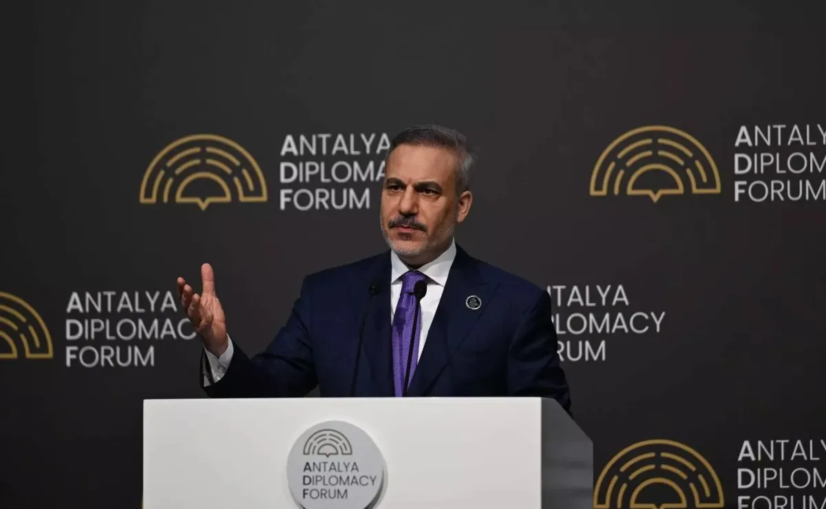 وزير الخارجية التركي هاكان فيدان خلال مؤتمر صحافي عقده في ختام أعمال «منتدى أنطاليا الدبلوماسي» الأحد (الخارجية التركية)