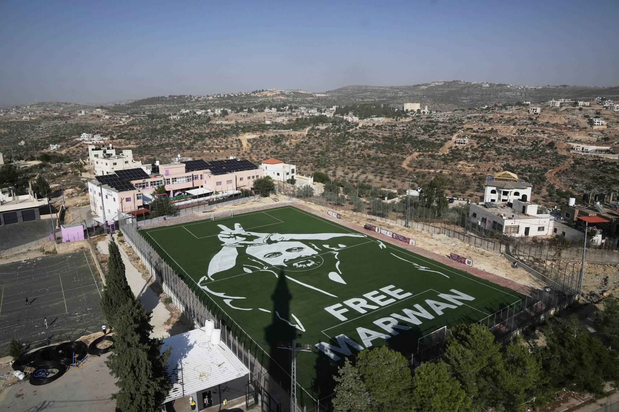تركيب فني لصورة للقيادي الفلسطيني المعتقل لدى إسرائيل مروان البرغوثي في مسقط رأسه قرية كوبر في الضفة الغربية شمال رام الله 27 نوفمبر 2025 (أ.ب)