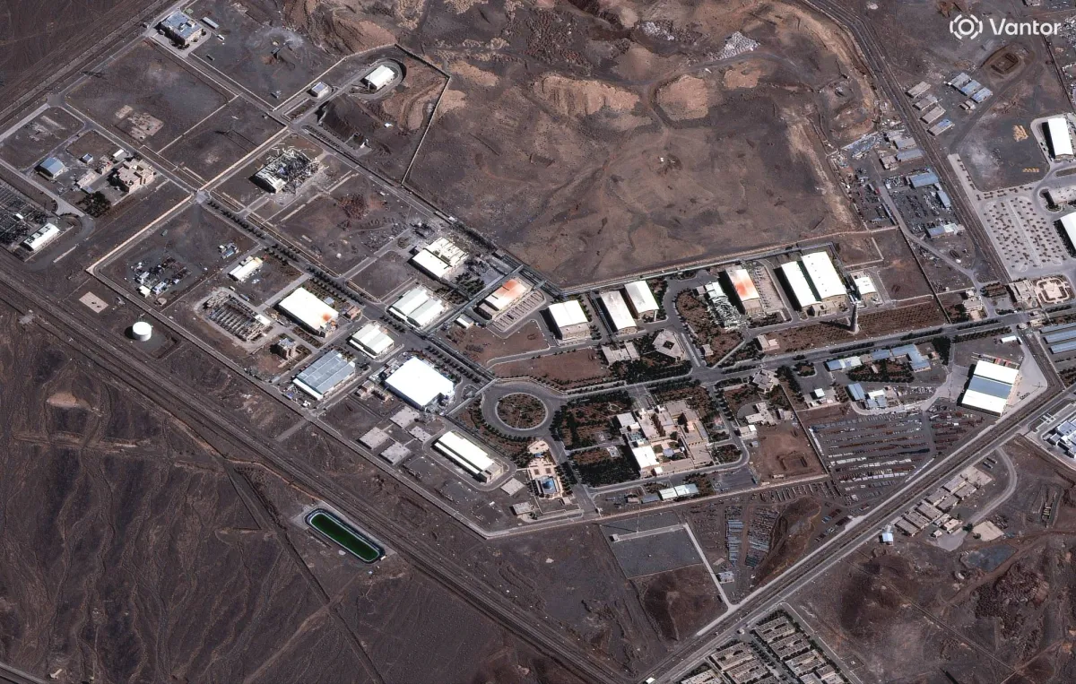صورة التقطها قمر اصطناعي يوم 17 يونيو 2025 تُظهر مبنى مُدمّراً في موقع نطنز النووي بإيران (بلانيت لابز - رويترز)
